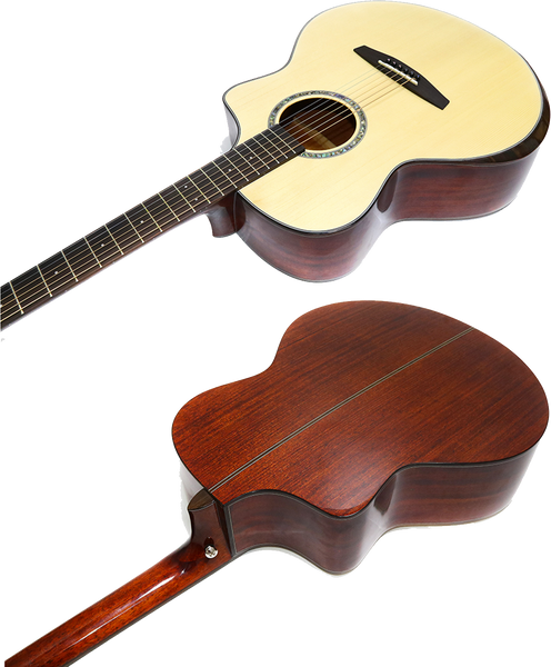 La Smiger F2SS réunit toutes les caractéristiques d'une guitare haut de gamme. Entièrement massive, table d'harmonie en épicéa et dos/éclisses en acajou, cette guitare saura satisfaire les musiciens exigeants recherchant une sonorité brillante et cristalline avec des mediums et des basses percutants.